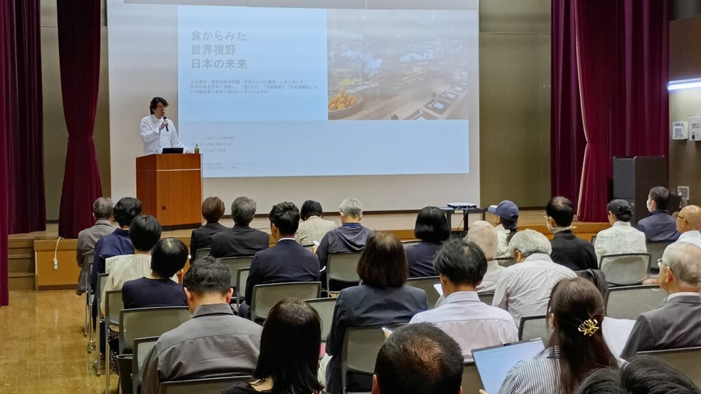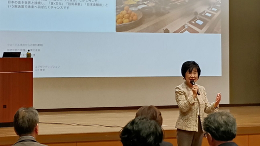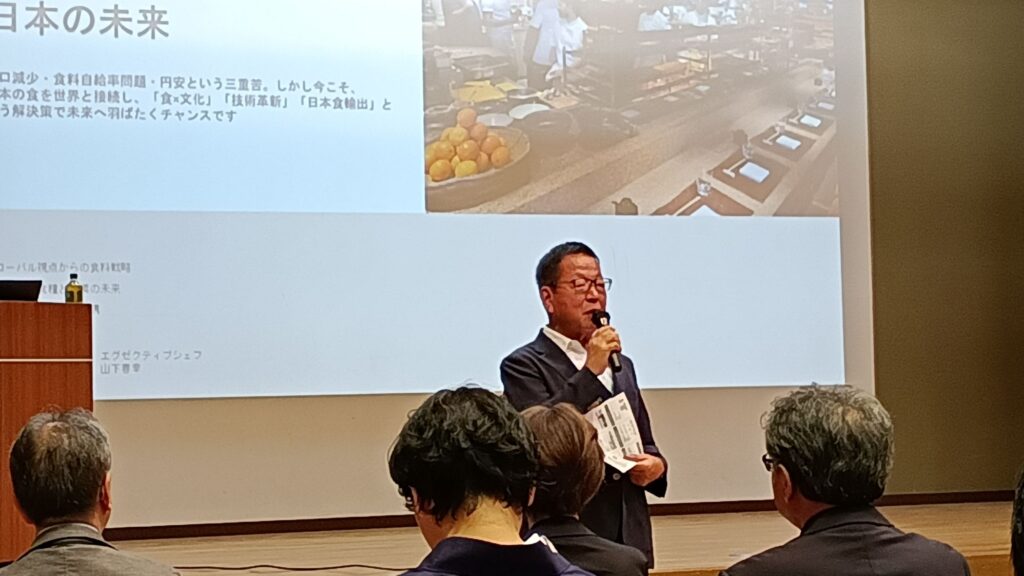 現役の大学教授兼シェフとして、業界団体の設立や関係省庁と連携して日本の食文化の発信、地位向上にご尽力されるシェフから、日本食、日本産品の現状と未来の課題について、具体的なデータや他国との比較を交えグローバルな視点でお話をしていただきました。